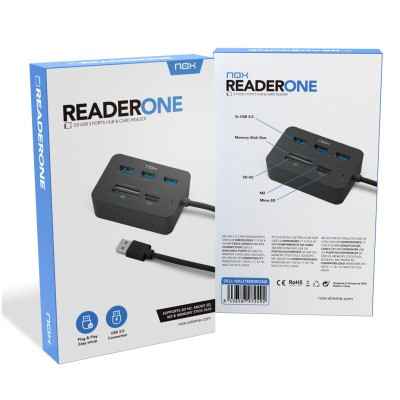 Nox Lite Reader One es un multilector de tarjetas, compatible con los principales formatos del mercado, que también posee tres puertos USB 3.0 de alta velocidad para conectar todo tipo de dispositivos. Se trata de la solución perfecta para transmitir archivos a una alta velocidad de una manera estable y segura, ampliando así las conexiones del ordenador o portátil.