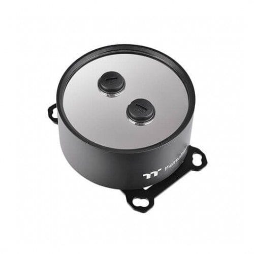 Un bloque de agua de CPU con base de cobre de 52,2 mm de altura tiene una estructura única con una cubierta superior con acabado de espejo, que se vuelve transparente una vez que las luces RGB brillan, mostrando nuestro logotipo TT y entregando 16,8 millones de colores de iluminación que es compatible con el software TT RGB Plus.
