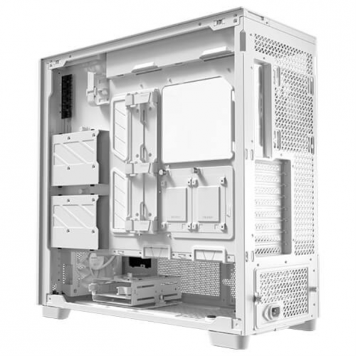 Antec FLUX PRO White EUV. Factor de forma: Full Tower, Tipo: PC, Color del producto: Blanco, Madera. Ubicación de fuente de alimentación: Fondo, Factores de forma de la fuente de alimentación compatibles: ATX. Ventiladores frontales instalados: 3x 140 mm, Diámetro de ventiladores frontales soportados: 120,140 mm, Ventiladores traseros instalados: 1x 140 mm. Tamaños de disco duro soportados: 2.5,3.5″. Ancho: 245 mm, Profundidad: 530 mm, Altura: 545 mm