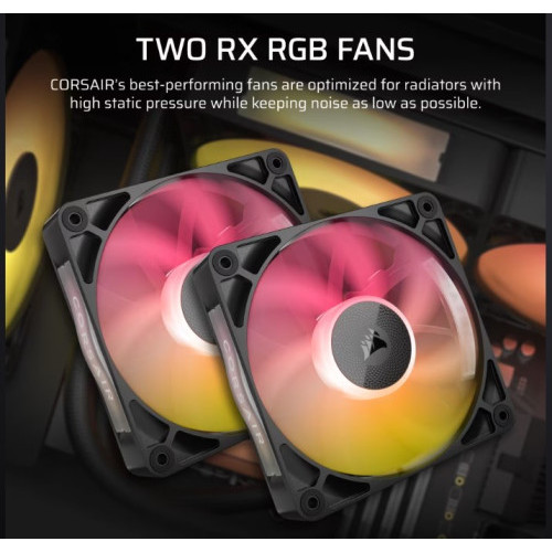Corsair iCUE LINK TITAN 240 RX LCD. Tipo: Refrigerador de aire, Diámetro de ventilador: 12 cm, Velocidad de rotación (mín.): 300 RPM, Velocidad de rotación (máx.): 2100 RPM, Nivel de ruido (baja velocidad): 10 dB, Nivel de ruido (alta velocidad): 36 dB, Máximo flujo de aire: 73,5 cfm. Ancho: 125 mm, Profundidad: 125 mm, Altura: 275 mm. Color del producto: Negro.