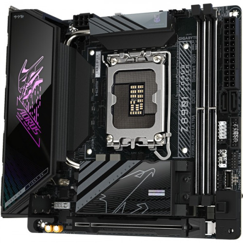 La GIGABYTE Z890I AORUS ULTRA se basa en el chipset Intel® Z890 y es compatible con procesadores Intel® para Socket 1851. Tiene dos ranuras DDR5 para hasta 128 GB de RAM. La GIGABYTE Z890I AORUS ULTRA también cuenta con una ranura PCIe 5.0 x16. La GIGABYTE Z890I AORUS ULTRA también cuenta con sonido de 8 canales, una interfaz LAN de 2.5 Gigabit, WiFi 7, Bluetooth 5.4, dos puertos SATA3, dos puertos M.2 y varias interfaces USB.