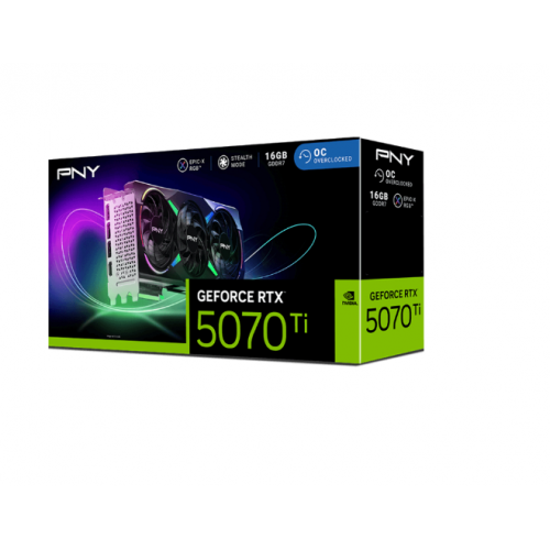 PNY GeForce RTX 5070 Ti EPIC-X RGB OC, GeForce RTX 5070 Ti, 16 GB, GDDR7, 256 bit, 7680 x 4320 Pixeles, PCI Express x16 5.0.